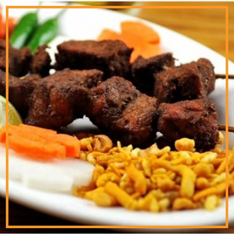 Buff Sekuwa is a Nepali dish made by marinating fresh buffalo meat in aromatic spices, and grilling it over charcoal for a smoky flavour, creating a unique and unforgettable taste experience.