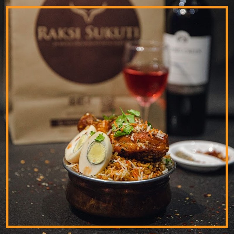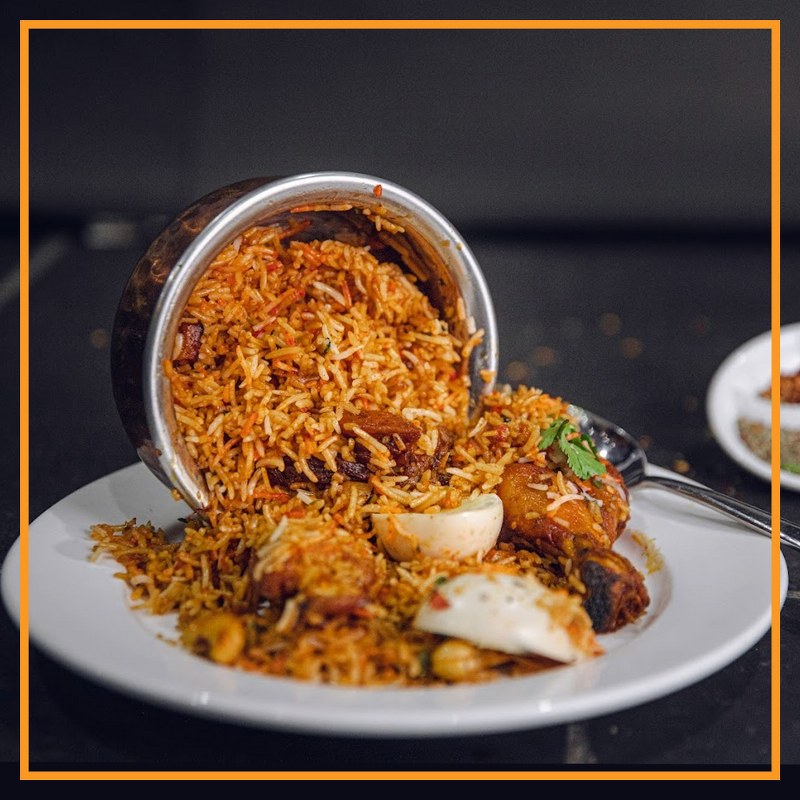 Basmati rice cooked with marinated chicken, spices, onions, tomatoes, garlic, ginger, and chilies, layered and infused with saffron milk.