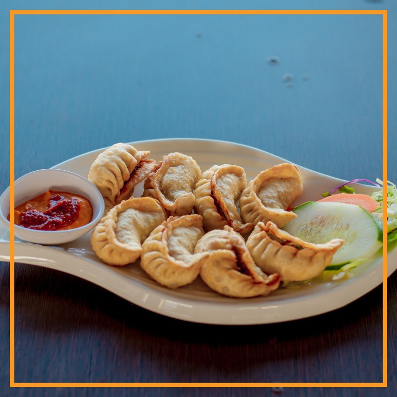 Tender wrappers filled with chicken seasoned with garlic, ginger, onions, and spices fried until golden, served hot with spicy dipping sauce.