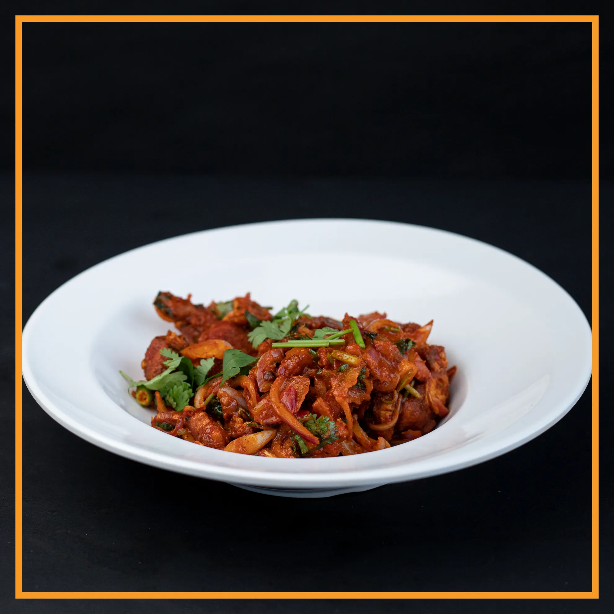 Sukuti Sadheko is a uniquely Nepali dish featuring crispy smoke-dried meat mixed with aromatic spices, fresh tomatoes, zesty garlic, and invigorating ginger, offering a delightful range of flavors and textures.