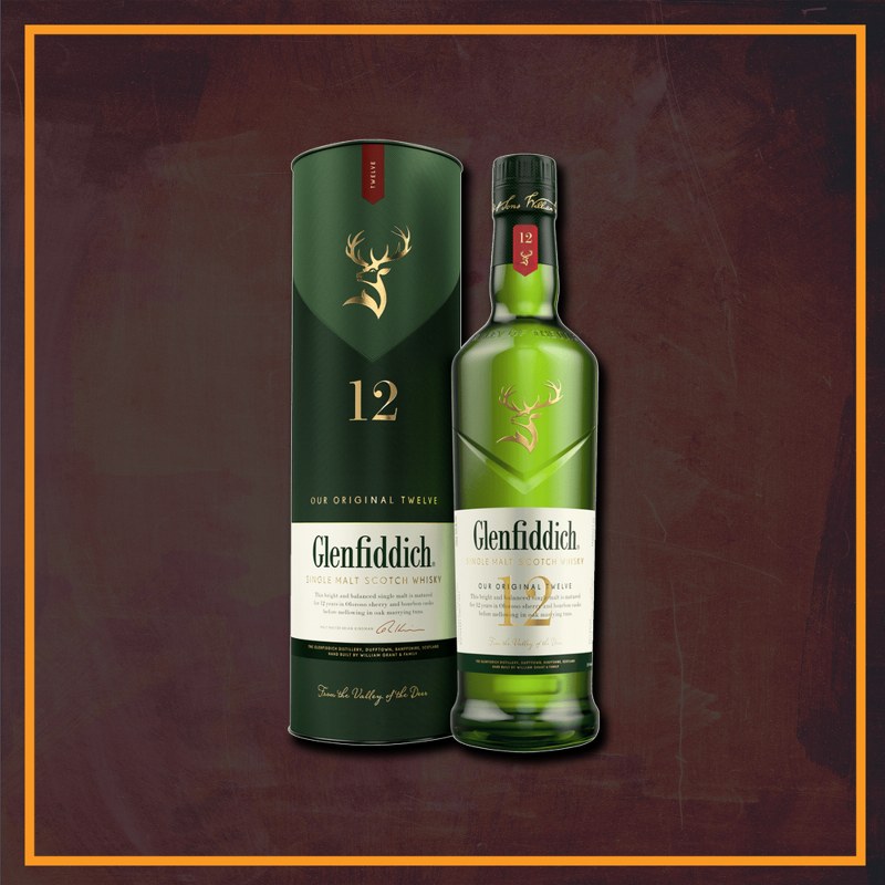 After 12 years, this signature single malt by Glenfiddich - the pioneer of the prestigious single malt category - offers a distinctive fresh and fruity nose with a hint of pear followed by a palate of butterscotch, cream, malt and a subtle oak thanks to its long maturation in Oloroso sherry and bourbon oak casks.