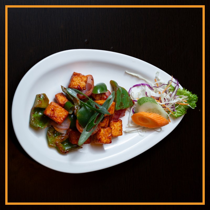 Paneer cooked in a spicy and tangy gravy with mixed vegetables.