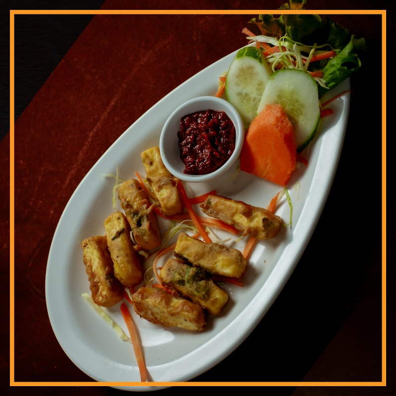 Cubes of paneer coated in a spiced chickpea flour batter, deep-fried until golden and crispy.