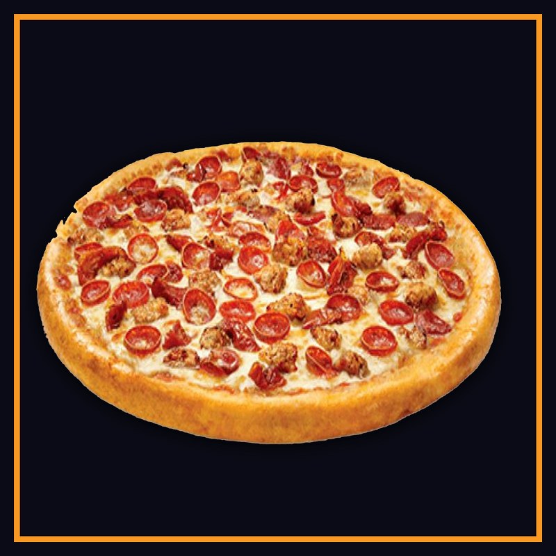 It is a mix of toppings like pepperoni, sausage, bell peppers, onions, mushrooms, olives, and more.